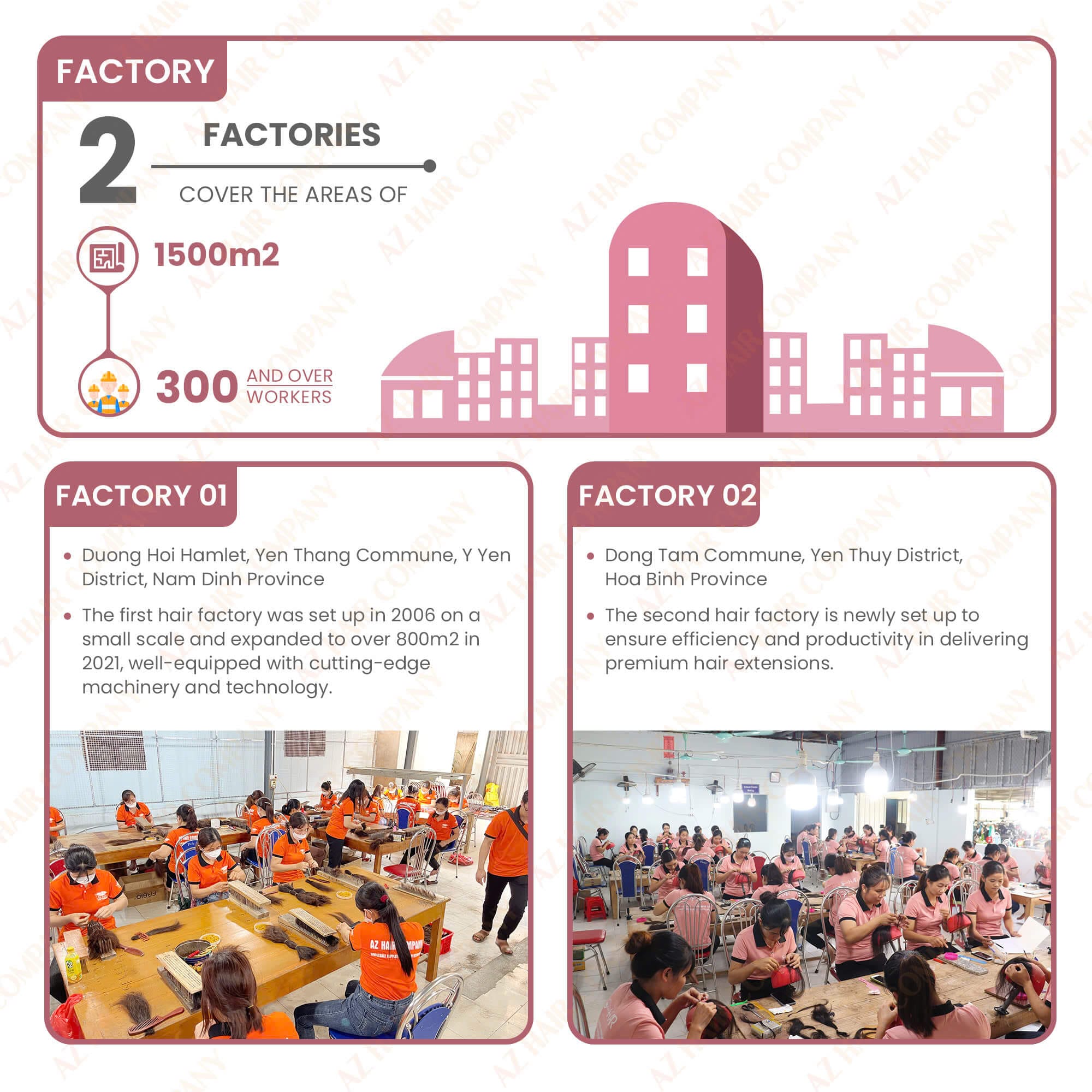 At AZ Hair, we are proud to be a trusted leader in the manufacturing of premium Vietnamese hair extensions. Our journey is built on a foundation of dedication, expertise, and innovation, all coming together to create exceptional products that enhance and empower your natural beauty. As a factory committed to quality, every strand of hair that passes through our doors reflects our passion for excellence. From the careful selection of raw materials to the meticulous production process, we ensure that our hair extensions meet the highest standards of durability, softness, and versatility.