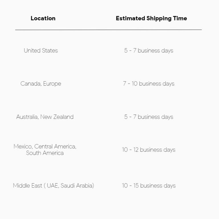 This picture is an estimate of the shipping times. Due to factors that often affect international shipments, such as holidays, customs, and weather delays, we can only offer an estimate of shipping times.