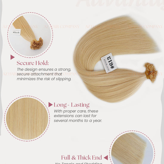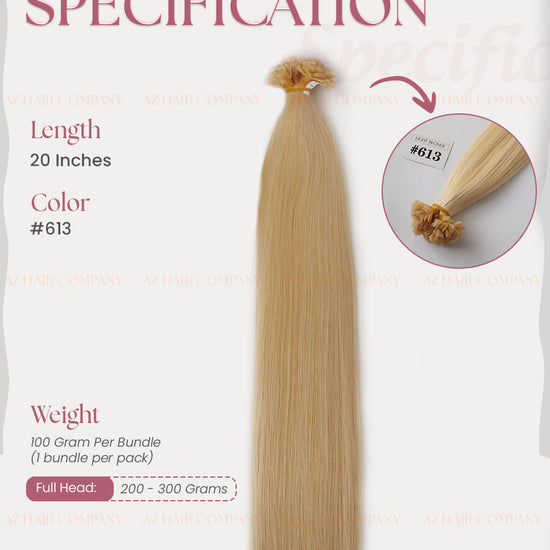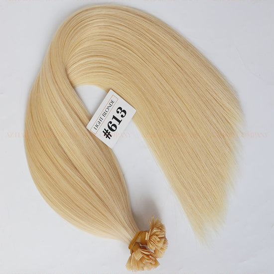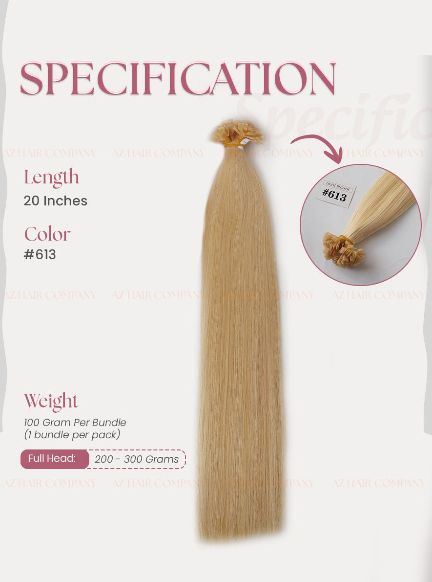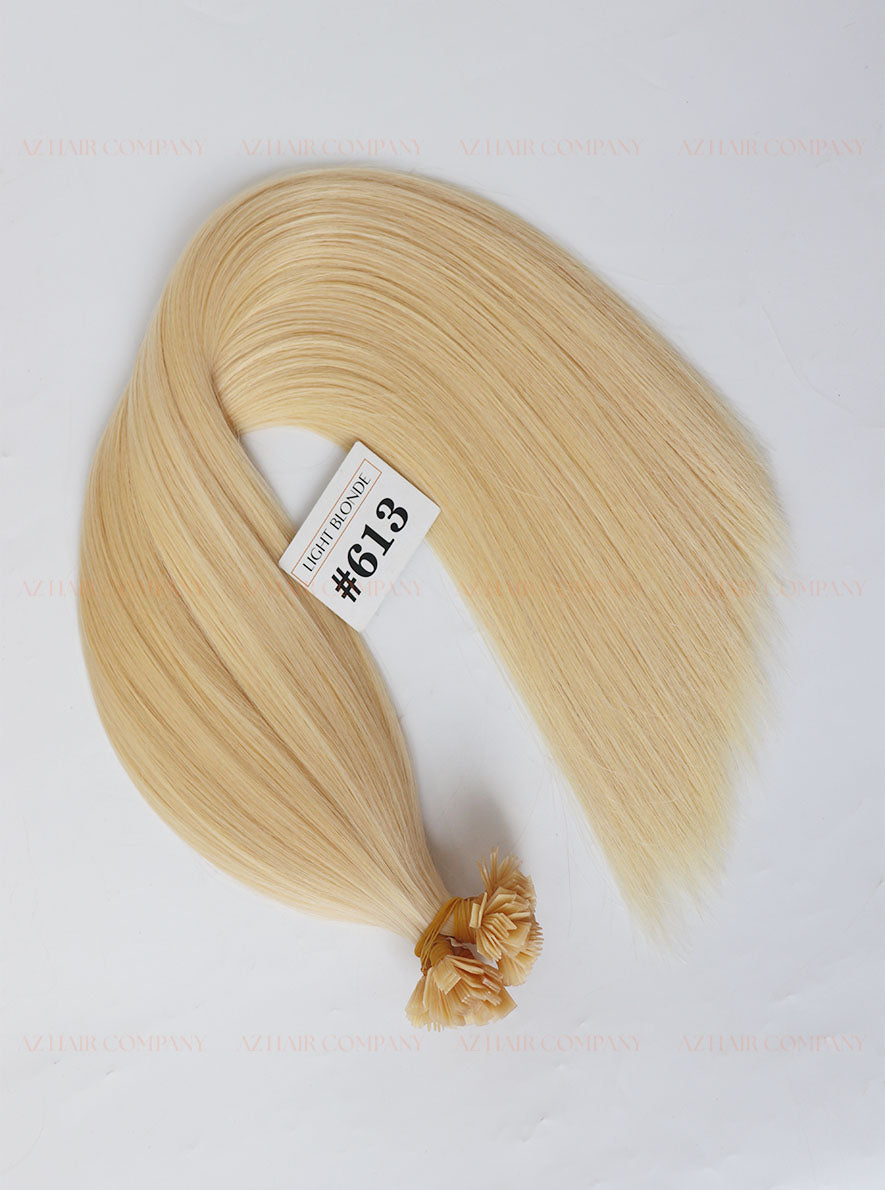 Upgrade your professional hair extension services with the Flat Tip Hair Extensions in Light Blonde (#613) — a trendy, vibrant bright blonde shade that is highly favored in international markets. The durable keratin flat-tip structure allows for a secure, lightweight, and long-lasting attachment to natural hair.
