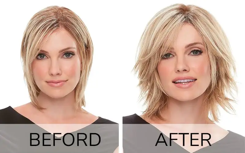 Normally, women are choosing toppers over wigs because they still have the choice of incorporating their own hair, giving them a more natural look. Toppers are generally less full than wigs, so for someone transitioning to faux hair due to hair loss, it’s a much gentler switch. However, it’s important to note that hair toppers are not suitable for individuals with complete baldness or those who have no hair in the areas where the topper is meant to be attached. In such cases, a full wig or other alternative hair replacement options may be more appropriate.