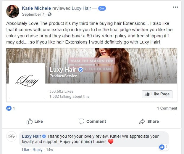 As for Google reviews, which is also an excellent credible review platform, Luxy Hair was seemingly doing very well too.