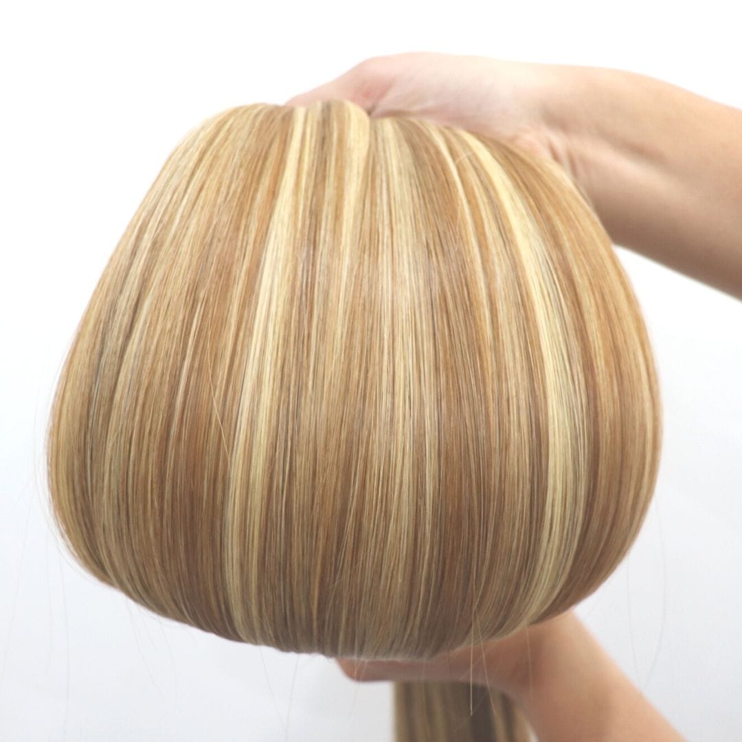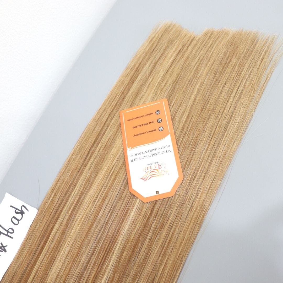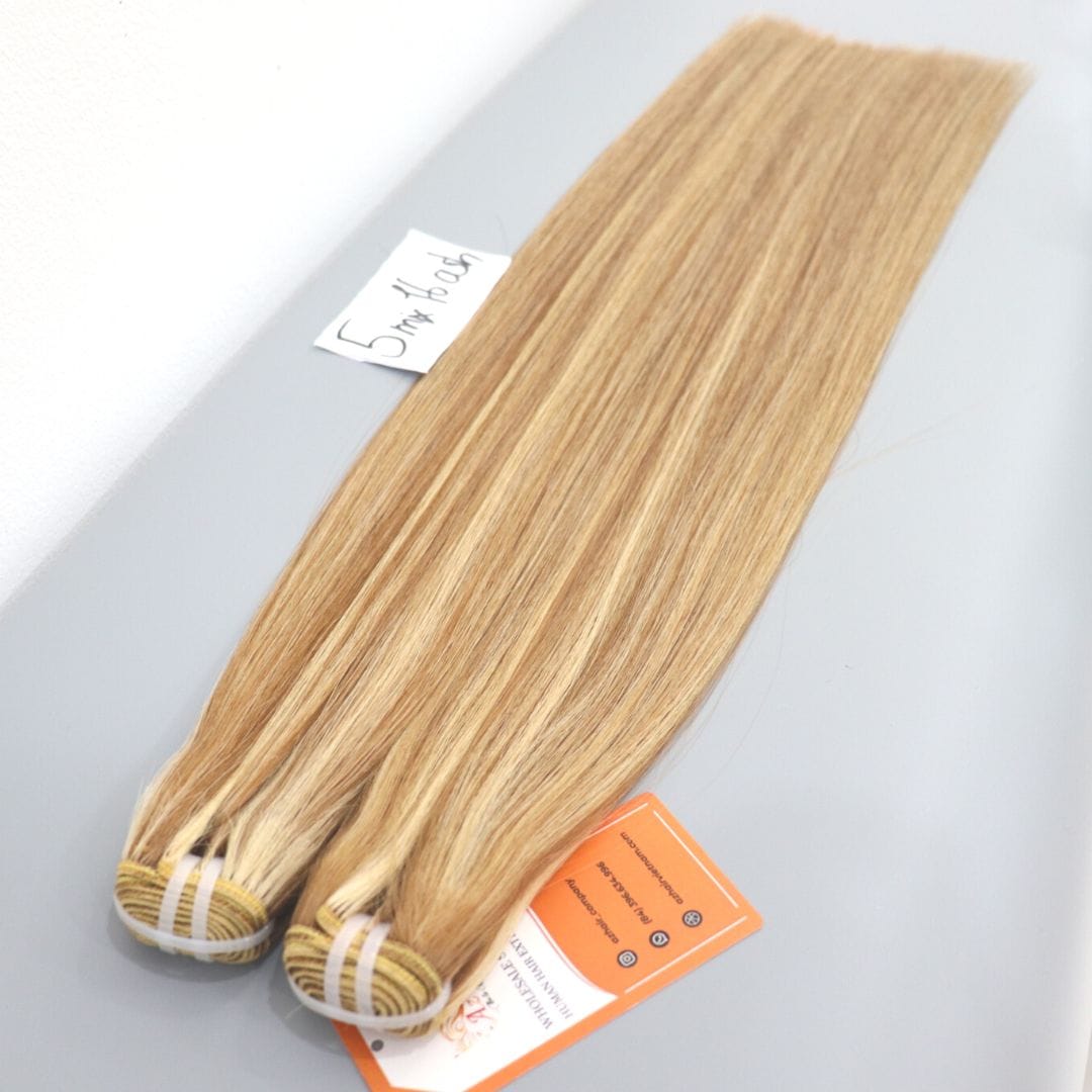Hand-tied refers to the formation of the extension itself. Hand-tied extensions are just what they describe: strands of hair tied together by hand, forming a weft. Hand-tied extensions have a weft that is typically 11”-12” wide. The hair is knotted by hand along with 2-3 threads to create a weft.
