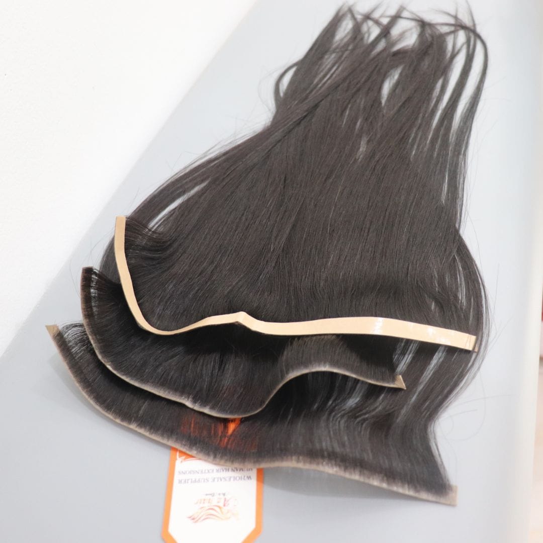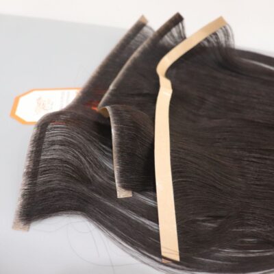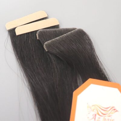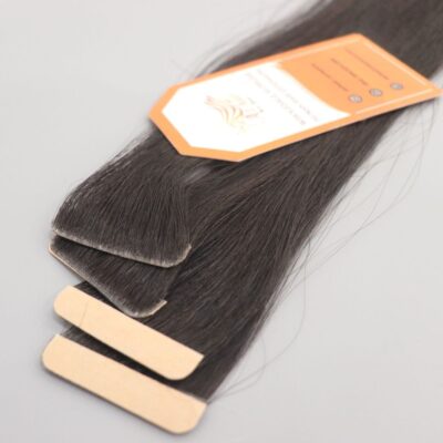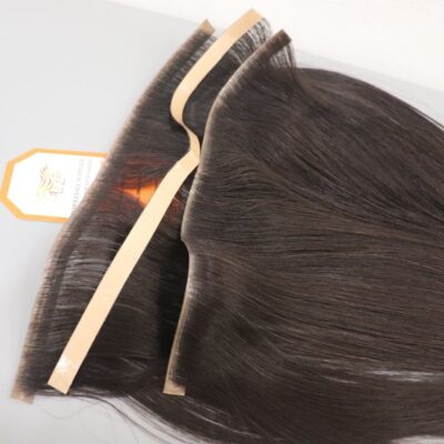 Tape-in extensions are the most popular hair extension trend on the market. Tape-in hair extensions are thin tape wefts, 4cm wide wefts of hair secured at the top with a sticky tab, that get “taped-in” in between your own hair in “sandwich” like bonds. Tape-in extensions are a form of hair extensions glued with medical-grade adhesive. By using replaceable double-sided tape spread as an adhesive to maintain the extension of the hair. The tape can be reused and cut into smaller hair extension pieces at will. It is the most requested hair extension method in salons worldwide.