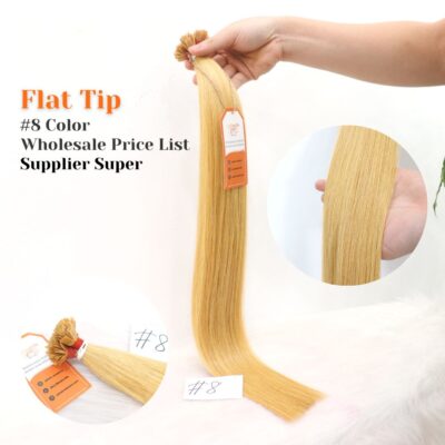 Flat-Tip Hair Extensions Straight #8ash Color Hair Vietnam with a bronde or brownish blonde hair color is a fabulous effortless-looking hair color for fair and medium skin tones with light brown, green, and hazel eyes.