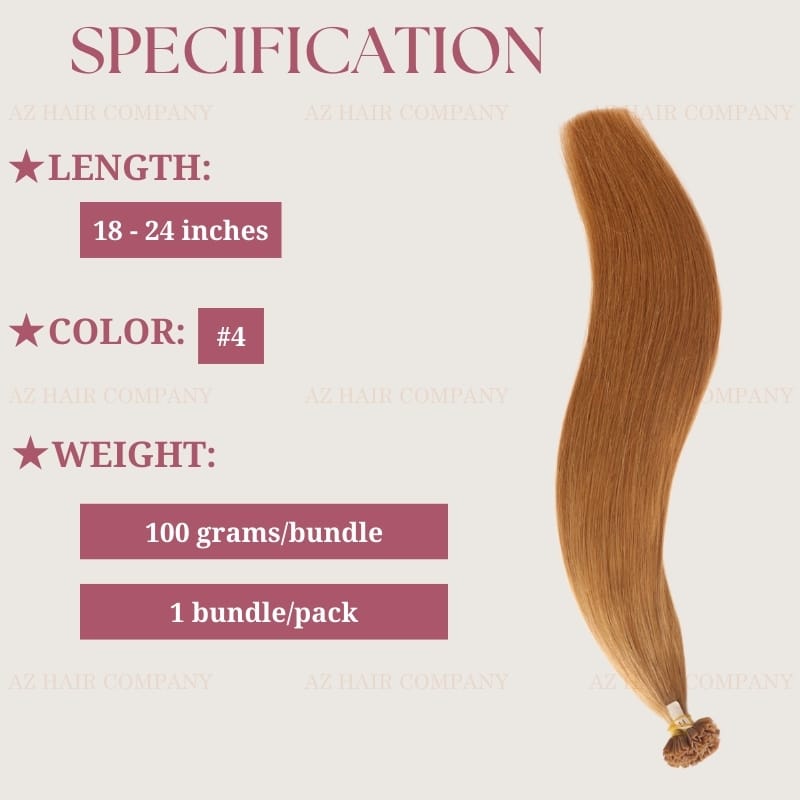 V Tip Hair Extensions in Color #4, Super Double Drawn, are the epitome of luxury and fullness. Featuring a rich medium brown shade, these extensions are meticulously crafted with a V-shaped keratin bond for a secure and seamless attachment. The super double drawn quality ensures consistent thickness from root to tip, providing a voluminous and polished look. With their silky texture and vibrant hue, they blend effortlessly with natural hair, creating a flawless transformation. Lightweight, durable, and easy to style, these extensions are perfect for achieving a glamorous, full-bodied hairstyle with a natural finish
