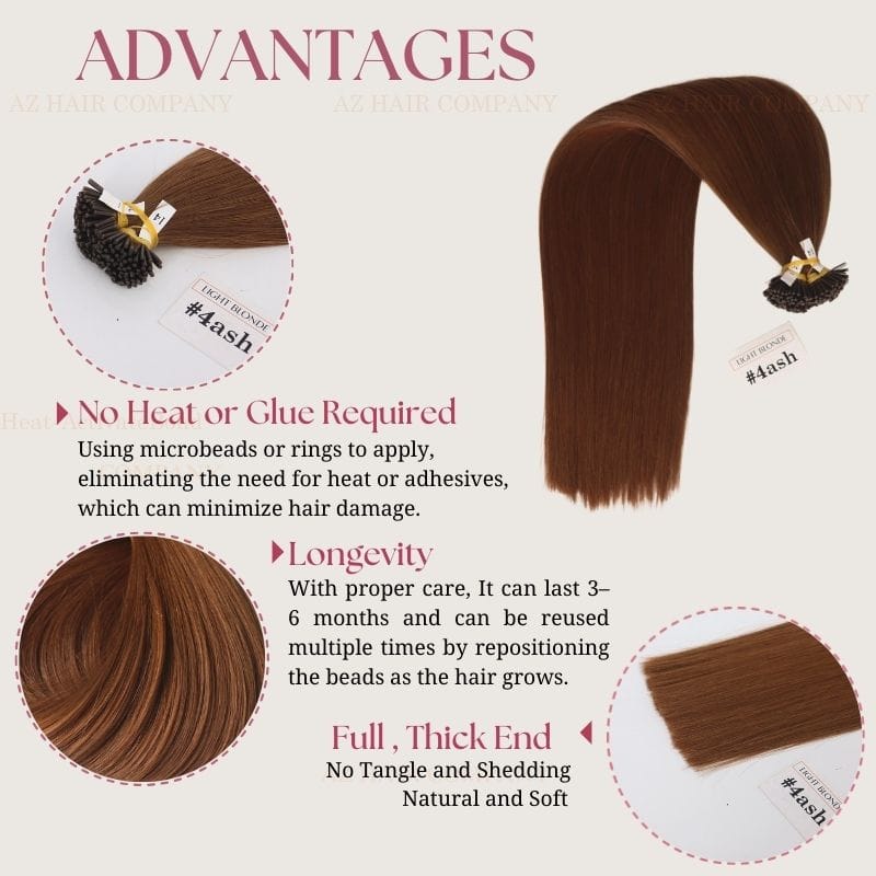 I Tip Hair Extensions Color #4ash Cool-toned Elegance
