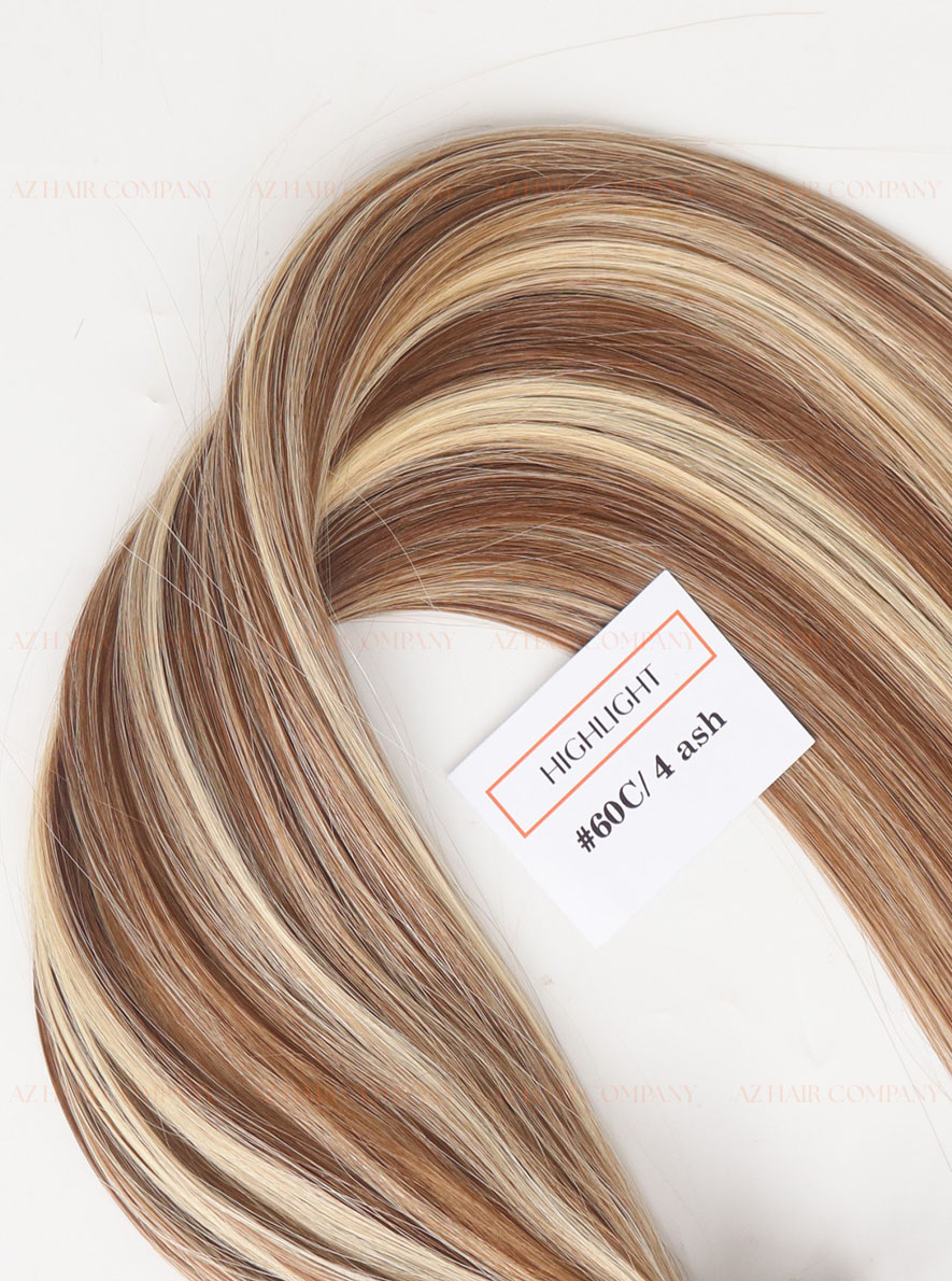 Enhance your hair with our Invisible Tape-in Hair Extensions Premium Quality Highlight 60C/4Ash, crafted from 100% high-quality Vietnamese human hair. These premium tape-in extensions feature a stunning highlight blend of cool platinum blonde (#60C) and ash brown (#4Ash), delivering a natural, dimensional look that adds depth and brightness to your hairstyle.