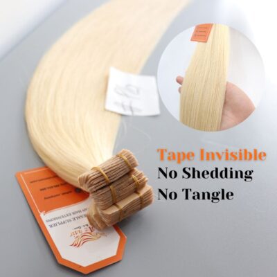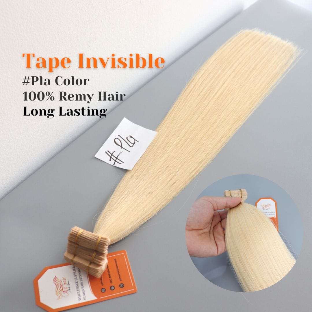 Invisible tape (or Injection tape/seamless tape) in extensions is a kind of tape ins. There are some differences between it and regular tape in extensions in the production process. This technology is much more advanced than regular tape ins production technology. It does not have short hair at the top. These invisible tape hair extensions are designed to mimic hair growing from the scalp and are made to be 100% invisible for a more natural-looking and discreet extension.