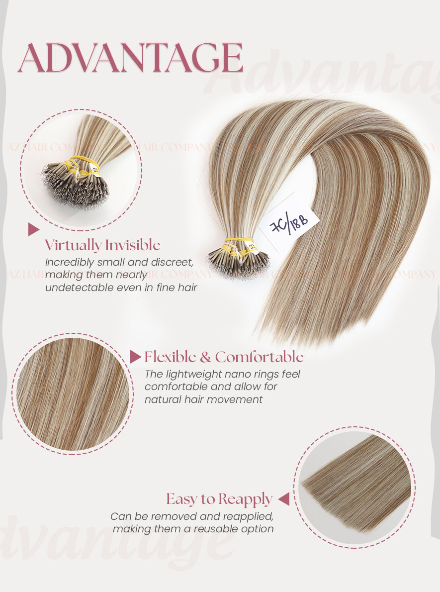 Nano Tip Hair Extensions Color #7C/18B Super Double Drawn