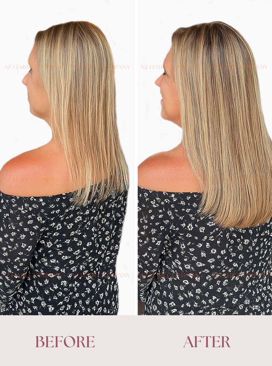 Nano Tip Hair Extensions in Color #7C/18B Super Double Drawn offer a perfect blend of warm and cool tones for a natural, dimensional look. With ultra-thick strands from root to tip, they provide maximum volume and a seamless finish. The nano-tip design ensures a secure, lightweight, and discreet application, making them ideal for a flawless, long-lasting hairstyle.