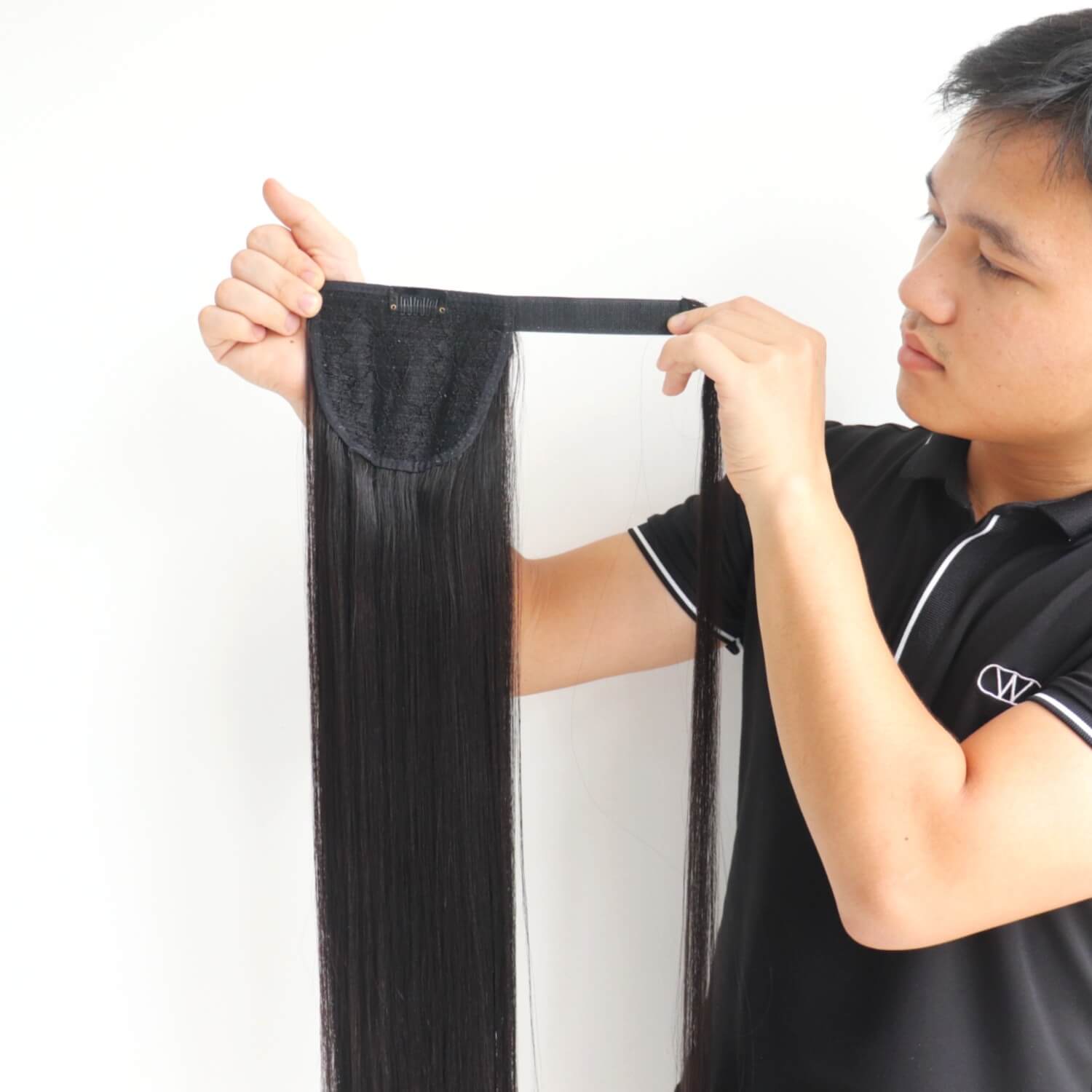 We recommend washing the ponytail extension every 30 wears, and only if there is too much product buildup to the point that they become unmanageable to style. When washing your ponytail extension, be sure to use alcohol and sulfate-free hair products, as well as a deep conditioning treatment for a few hours or even overnight, to restore moisture back into the hair.