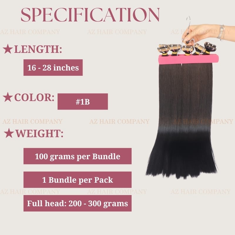 The Tape in Hair Extension in #1B color is designed to give you beautiful, natural-looking hair with added length and volume. Made with high-quality materials, these extensions blend seamlessly with your natural hair. They are easy to apply and can be reused multiple times, offering a convenient and long-lasting solution for gorgeous hair.