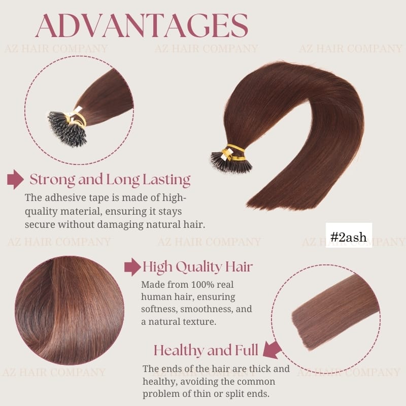 The nano tip technology ensures a secure yet discreet attachment, making the extensions virtually undetectable while providing maximum comfort. The cool ash brown shade (#2Ash) adds a subtle highlight effect, perfect for those who want to enhance their hair with natural-looking color variations without the commitment of dyeing.