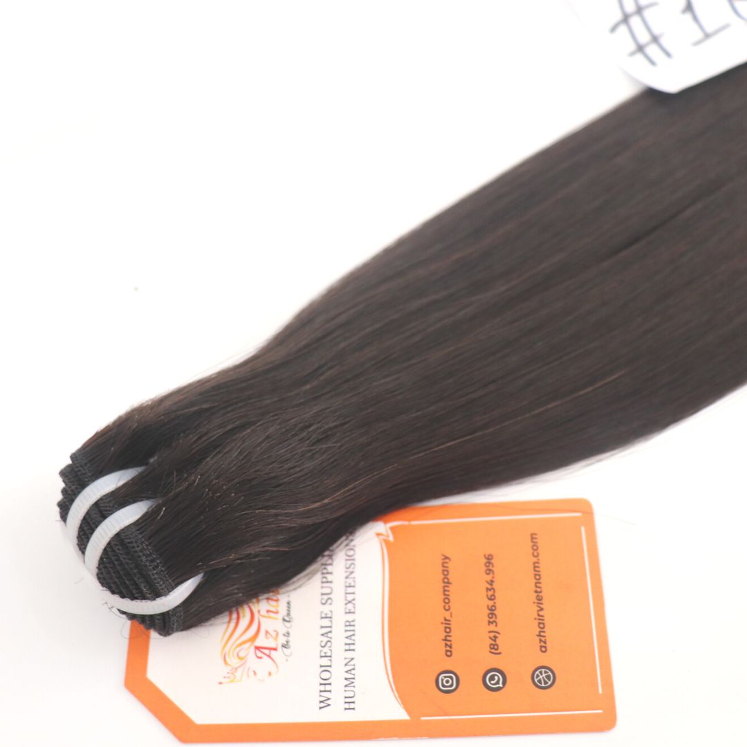 Super Double Drawn Bone Straight Weft Hair #1B Natural Color Long Length