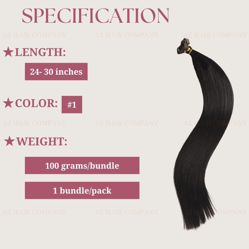 V-Tip Hair Extensions – Color #1 Super Double Drawn is sleek, jet black, and ultra-thick from top to bottom! Our V-Tip Hair Extensions Color #1 Super Double Drawn offer maximum volume and a full-bodied look. Made from premium human hair with a durable keratin bond, they ensure a secure, natural, and long-lasting hold. Perfect for achieving a bold, flawless, and voluminous hairstyle!