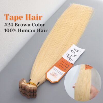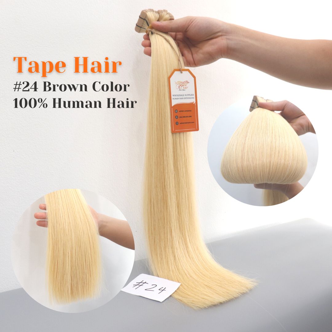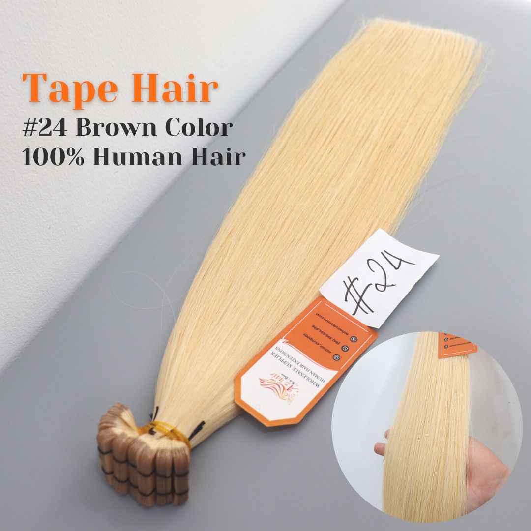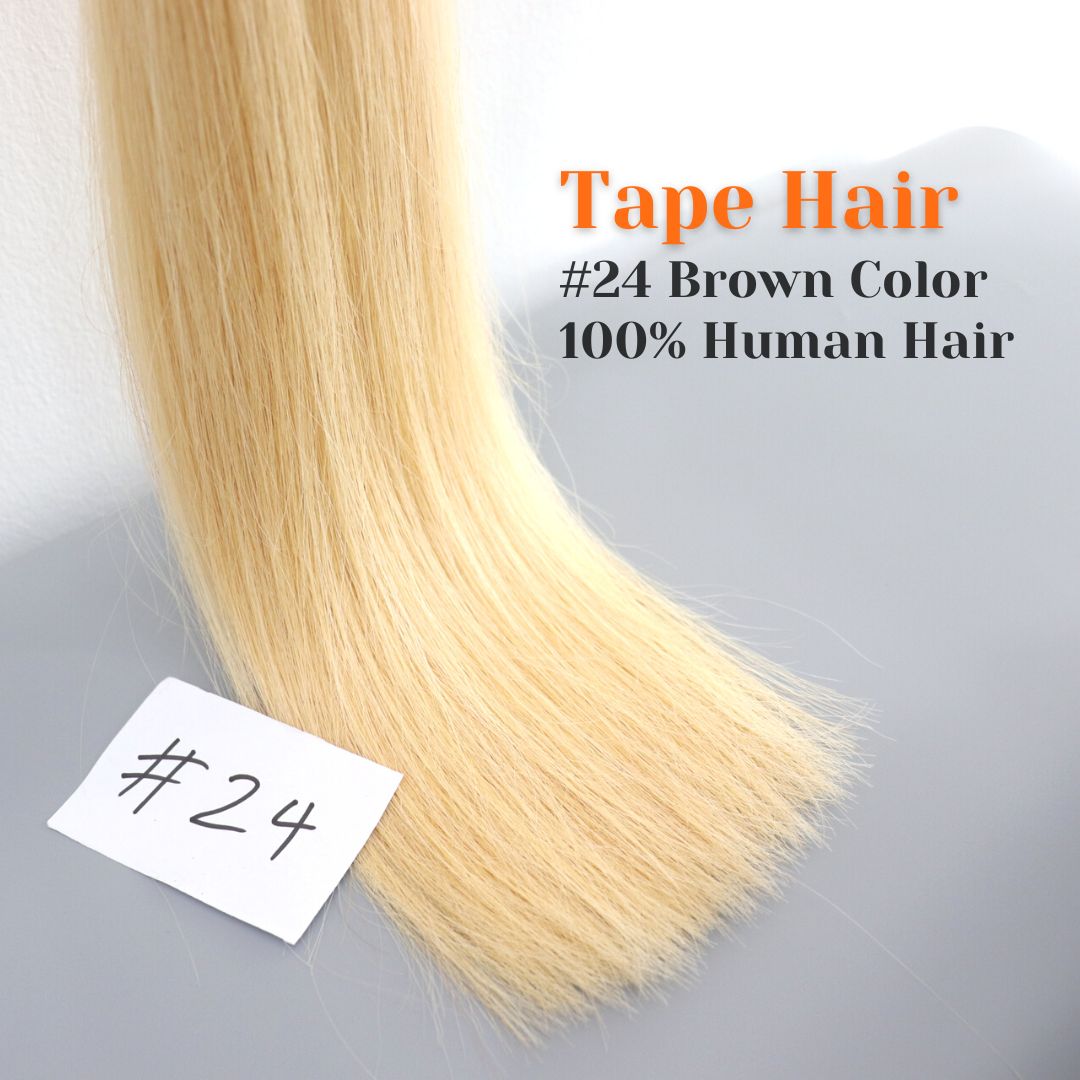 Tape-in Hair Extensions #24 Color Human Hair Vietnam is the truest sandy blonde with a soft, dusty, powdery hue that looks as idyllic and Insta-ready as the beachy vacations it’s inspired by.