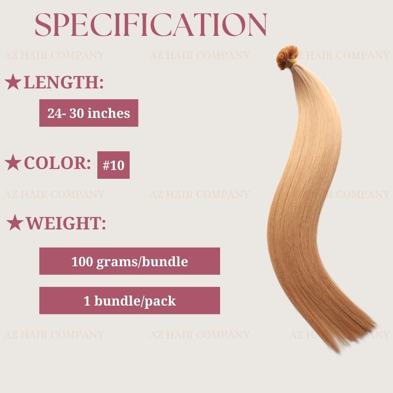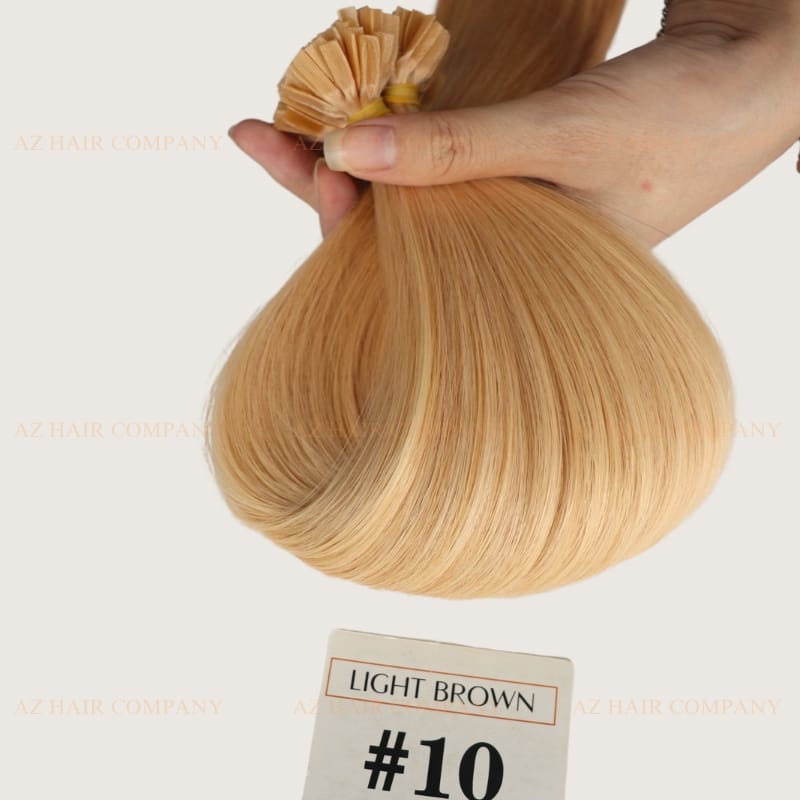 V Tip Hair Extensions in Color #10 offer a beautiful light brown shade that blends seamlessly for a natural and elegant look. Made from 100% high-quality human hair, these super double drawn extensions ensure exceptional thickness from root to tip, minimizing short strands for a fuller appearance. The pre-bonded V Tip design allows for a secure, discreet, and long-lasting attachment, making them an excellent choice for adding both volume and length. With a silky-smooth texture, these extensions provide a flawless finish, enhancing your hairstyle with effortless beauty and durability. Perfect for those who want a luxurious and natural transformation!