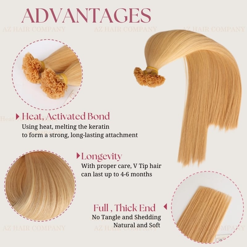 – V tip extensions made from 100% human hair can be curled, straightened, or styled with heat tools like your natural hair.