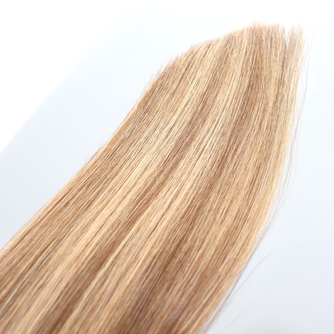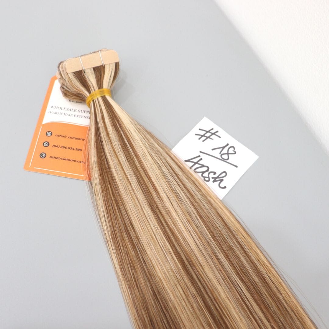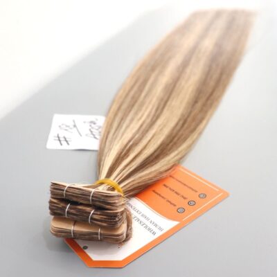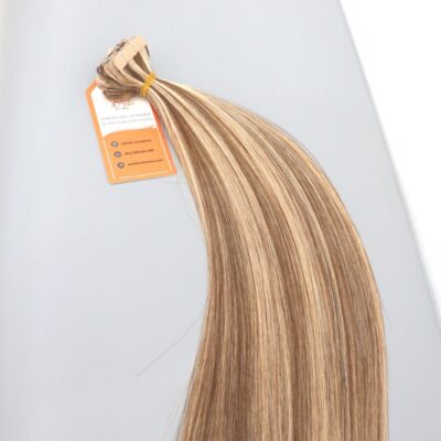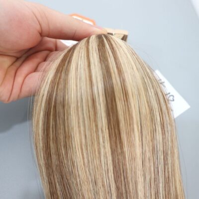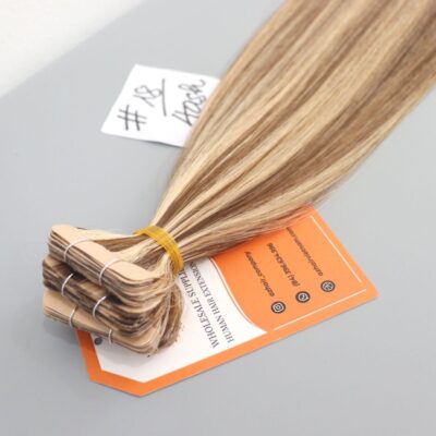 Tape-in extensions are the most popular hair extension trend on the market. Tape-in hair extensions are thin tape wefts, 4cm wide wefts of hair secured at the top with a sticky tab, that get “taped-in” in between your own hair in “sandwich” like bonds. Tape-in extensions are a form of hair extensions glued with medical-grade adhesive. By using replaceable double-sided tape spread as an adhesive to maintain the extension of the hair. The tape can be reused and cut into smaller hair extension pieces at will. It is the most requested hair extension method in salons worldwide.