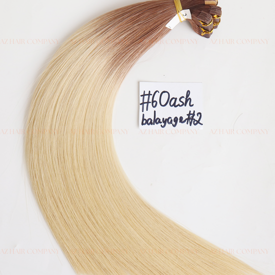 A trendy light–to–dark balayage effect with a smooth, natural, and luxurious transition. Elevate your look with the Regular Tape In Hair Extensions in Balayage (#60ash/#2) — a harmonious blend of cool ash blonde (#60ash) and natural dark brown (#2). This color combination delivers a modern, sophisticated, and irresistibly eye-catching appearance, perfect for clients who love European-inspired hairstyles. The ultra-thin tape tabs offer perfect invisibility, especially for fine hair, while remaining easy to remove and reuse by simply replacing the tape. This type of tape-in is highly favored by salons for its stability and effortless application.