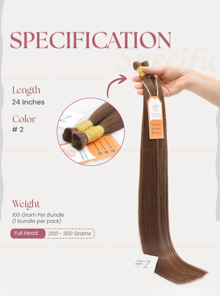 Dark Brown (#2) Bulk Hair Extensions 100g