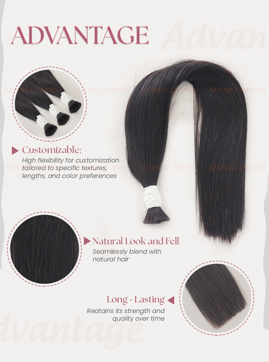 Our beautiful black shade with just a hint of brown undertones, Bulk Straight Hair Color #1B Human Hair Vietnamese is luxurious and bold. Bulk Straight Hair Color #1B Human Hair Vietnam is made with the highest quality, 100% Remy human hair, and available in the widest range of length and weight, it will instantly transform your hair and allow you to feel more confident with enviable thicker, longer hair than ever.