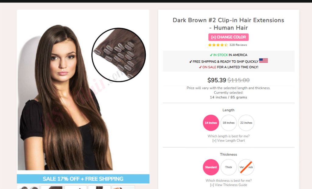 The hair extensions were classified into certain categories. This factor put all the options out on the table for the customer which made it easy to choose among the multiple options. For the clip-in hair extensions in the color that I chose, (dark brown) there were 3 options available in terms of length: 14 inches, 18 inches, and 22 inches.