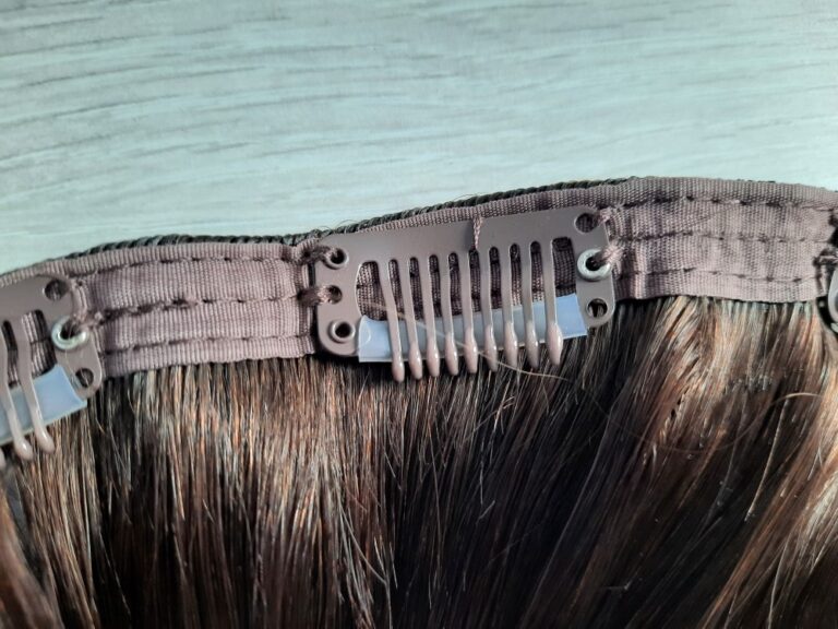 Those clip-in hair extensions are that the small clips were sewn onto a mesh or a cloth and were not directly glued or sewn onto the band of the hair extensions, this added fabric makes the clips more sturdy and prevents shedding.