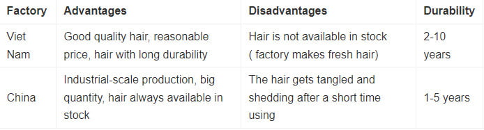 - In Vietnamese hair factories, each product will be carefully crafted by a small-scale factory, however, the factory always focuses on the quality of each item.